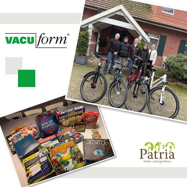Statt großer Weihnachtsgeschenke für Kunden spenden wir in der WISCHEMANN Group traditionell für einen guten Zweck. In diesem Jahr haben wir uns die Kinder und Jugendlichen auserkoren, darunter das Haus Patria in Salzbergen, Haddorf und Ohne, in dem junge Menschen mit herausfordernden Hintergründen ein Zuhause und verlässliche Unterstützung finden. VACU-form Geschäftsführer Christian Herdering übergab sehr gerne vier Fahrräder vom Fahrradhaus Wanning und viele neue Spiele für die Einrichtungen im Gesamtwert von 2.500 Euro. Weitere 2.500 Euro spendete WISCHEMANN an die terra nova Einrichtungen in Ochtrup für eine neue Outdoor-Tischtennisplatte und Freizeit-Aktionen.