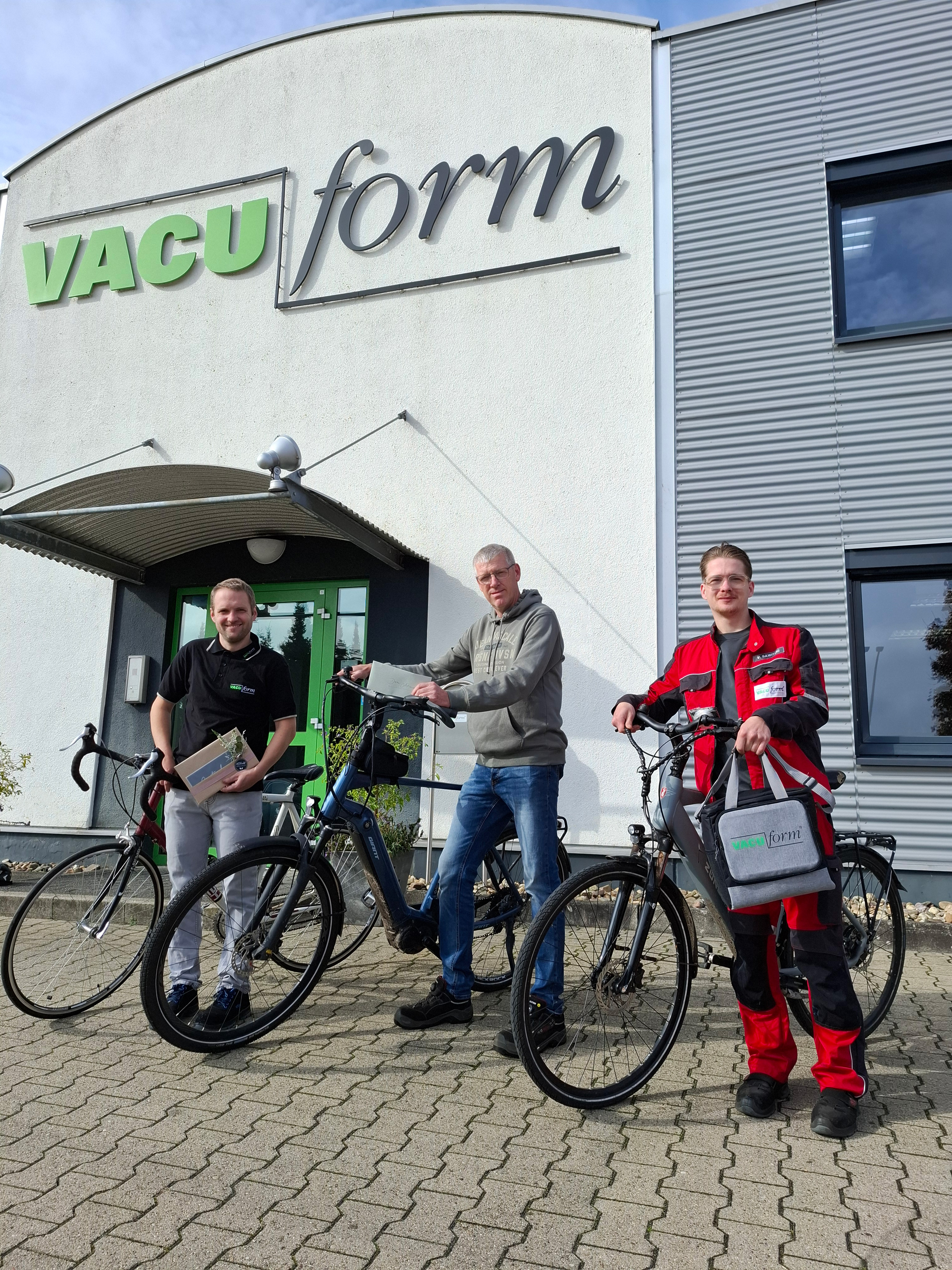 At this year's City Cycling event in Salzbergen from 30 August to 19 September VACU-form also fielded a team with 12 active cyclists clocking up an impressive 4,334 km. The most diligent cyclists among them have now been rewarded internally: we congratulate Dieter Löpmann on winning a €75 restaurant voucher for an impressive 1,169 km, Bernd Schürmann on winning a €50 voucher from a local farm shop for 869 km and Veit Sawitzki on winning a filled cooler bag for 615 km by bike within the three weeks. In addition, VACU-form is donating 5 Cent for every kilometre cycled by the Salzbergen team. We will report on the results here shortly...